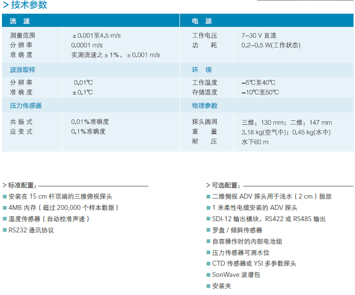 · 領先(xiān)的低速(sù)(可測最(zui)低流速(su)達0.001 m/s)、淺水(shuǐ)(最淺可(kě)達0.02 m)性能(neng)